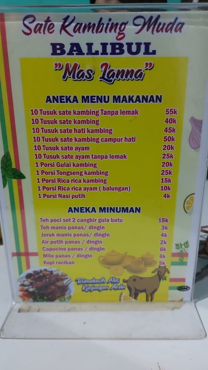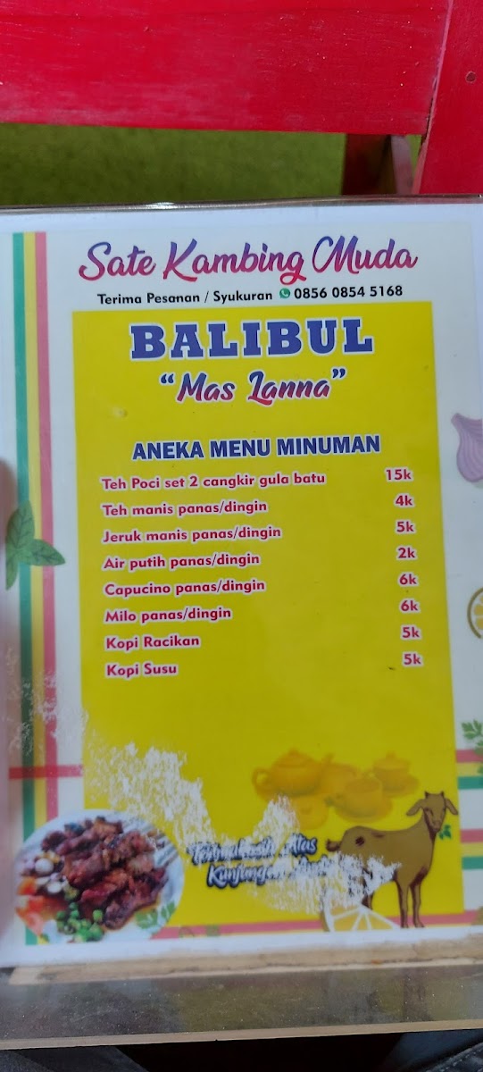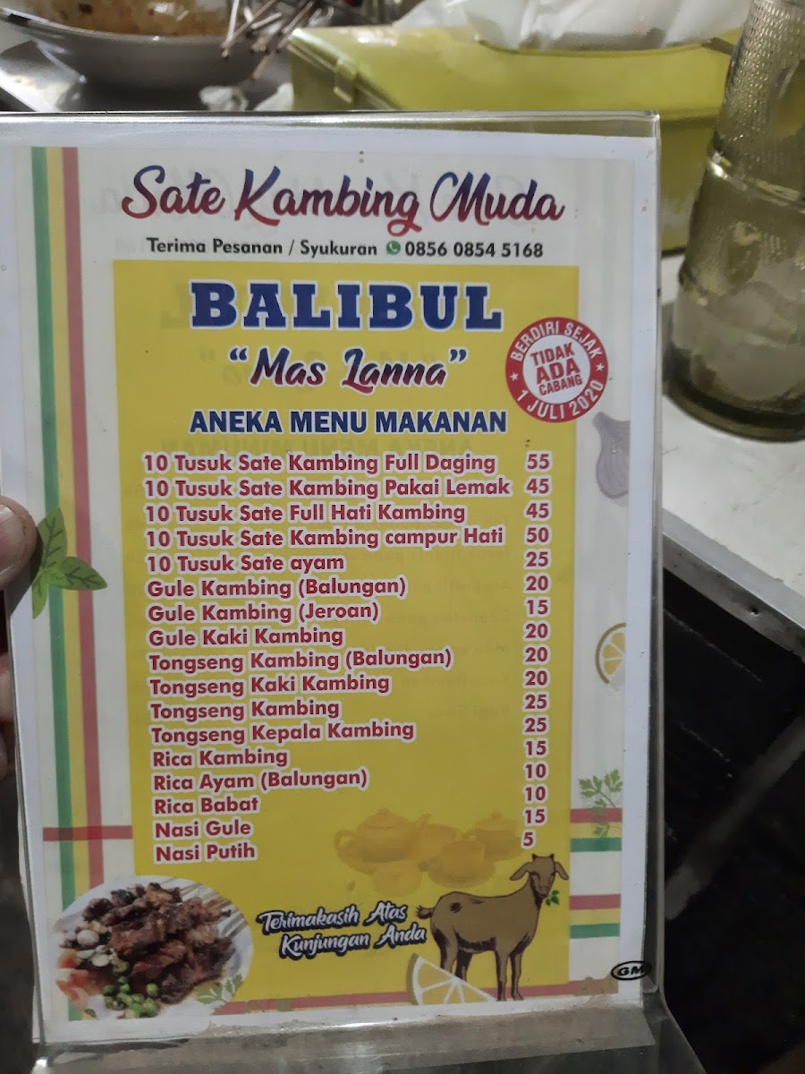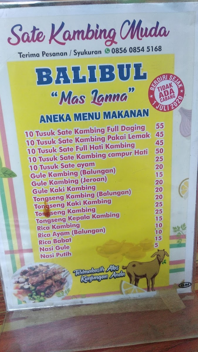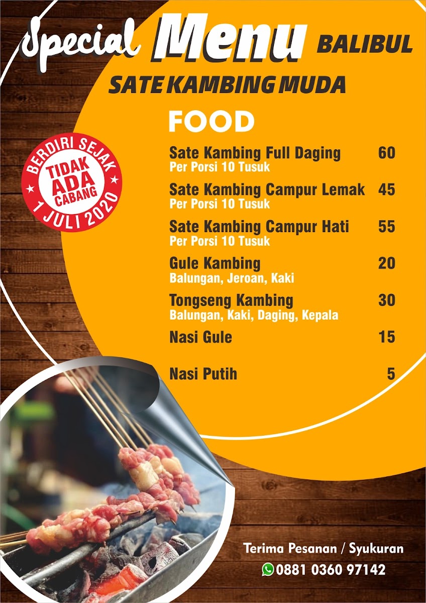 Sate kambing muda (BALIBUL) khas tegal Menu